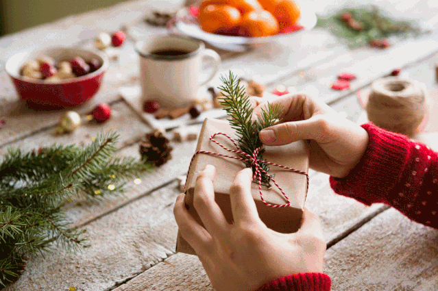 它是圣诞老人衣帽和圣诞礼物缎带的颜色